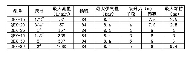 3、揚程、流量可通過氣閥開度實現(xiàn)無級調(diào)節(jié)(氣壓調(diào)節(jié)在3-8.4 bar之間);