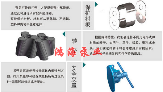 HTLB凸輪轉(zhuǎn)子泵 / 無堵塞排污泵 / 高粘度轉(zhuǎn)子泵用途 ,在自吸、氣液混輸、泥漿輸送等方面表現(xiàn)異;對(duì)腐蝕性強(qiáng)、粘度高或?qū)γ}動(dòng)敏感的介質(zhì) 別合適。 、節(jié)能、堅(jiān)固是這款凸輪轉(zhuǎn)子泵的主要 征。